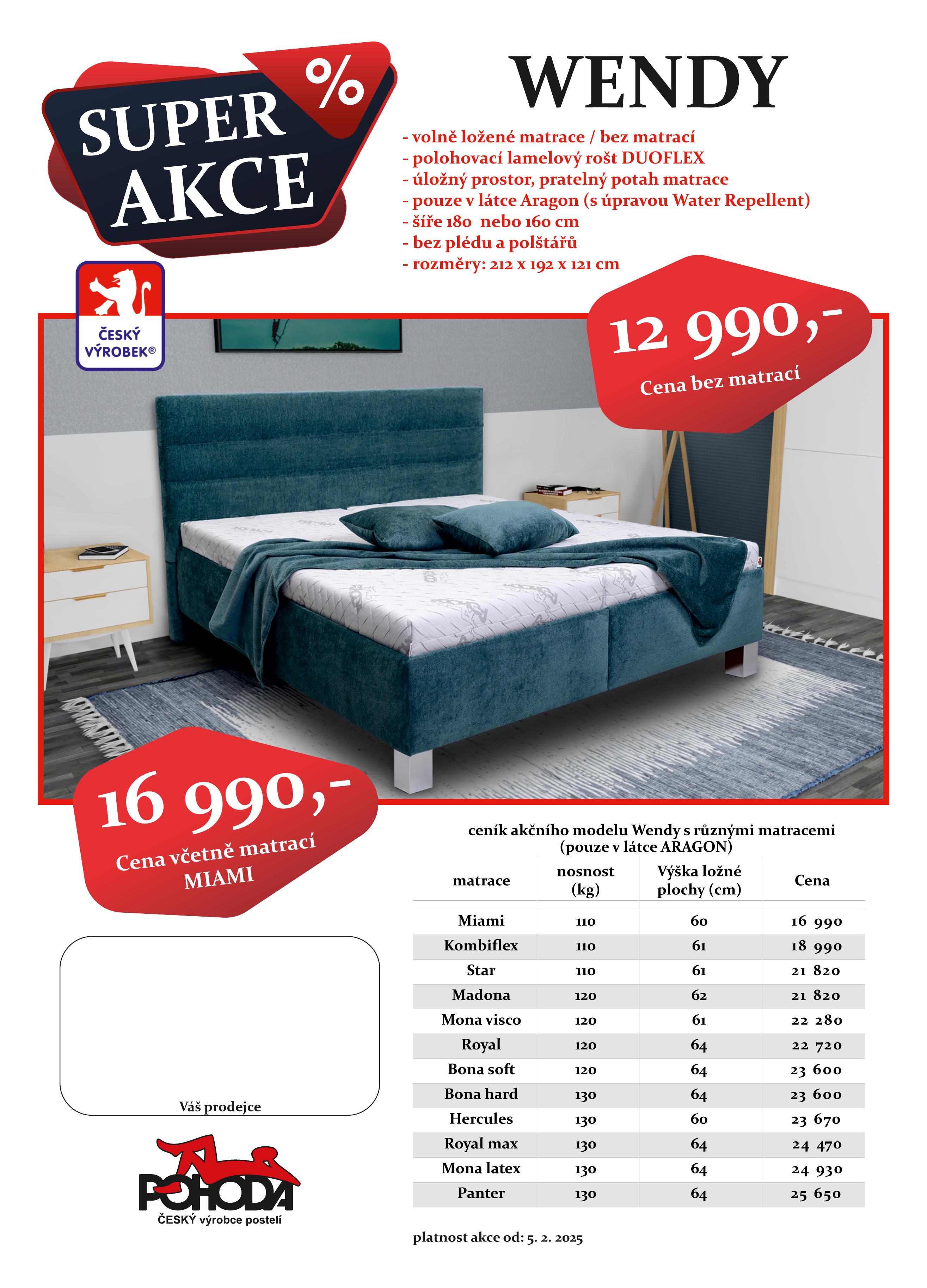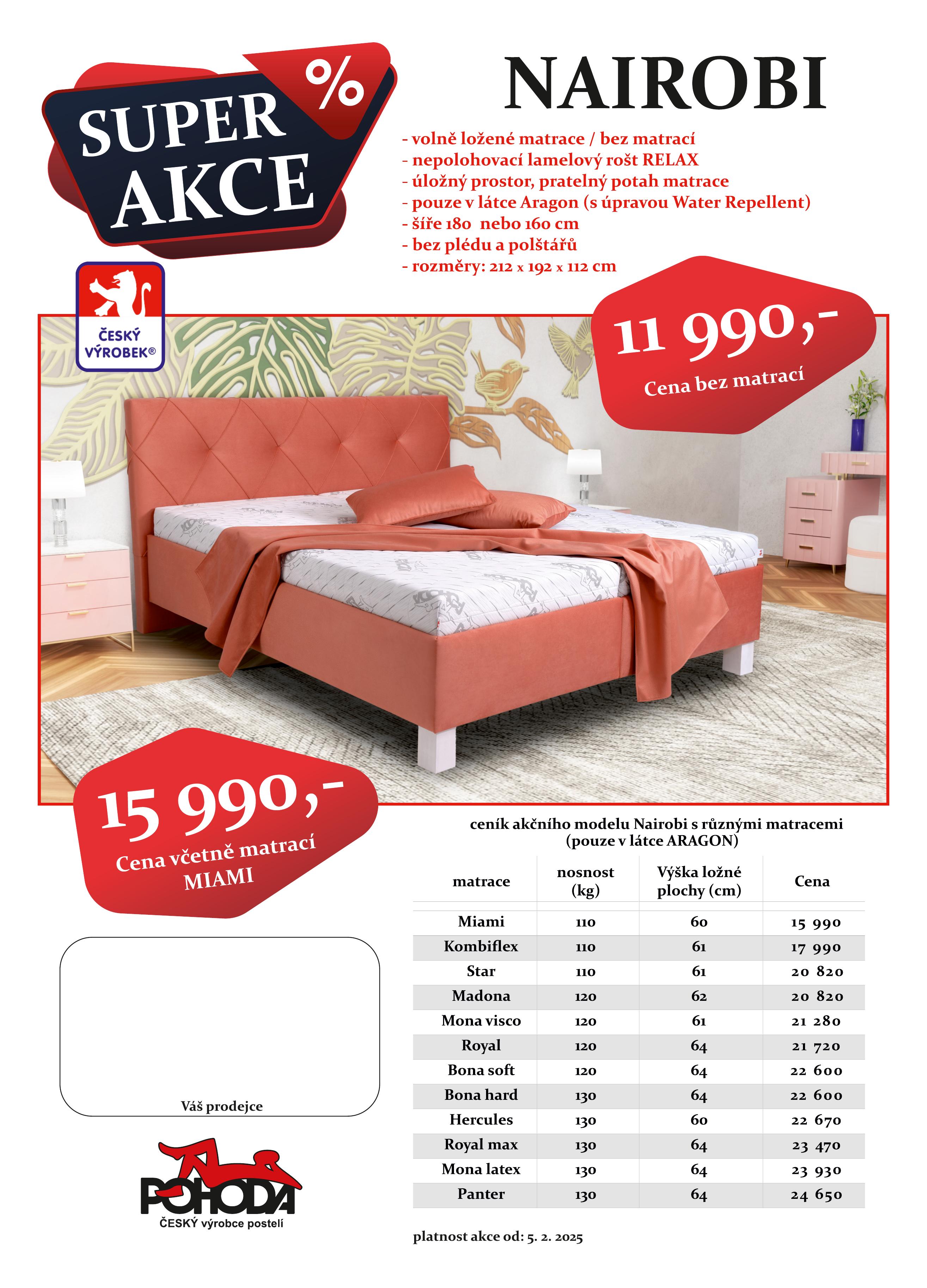 Slevová AKCE na vybrané modely postelí NAIROBI a WENDY od Českého výrobce POHODA