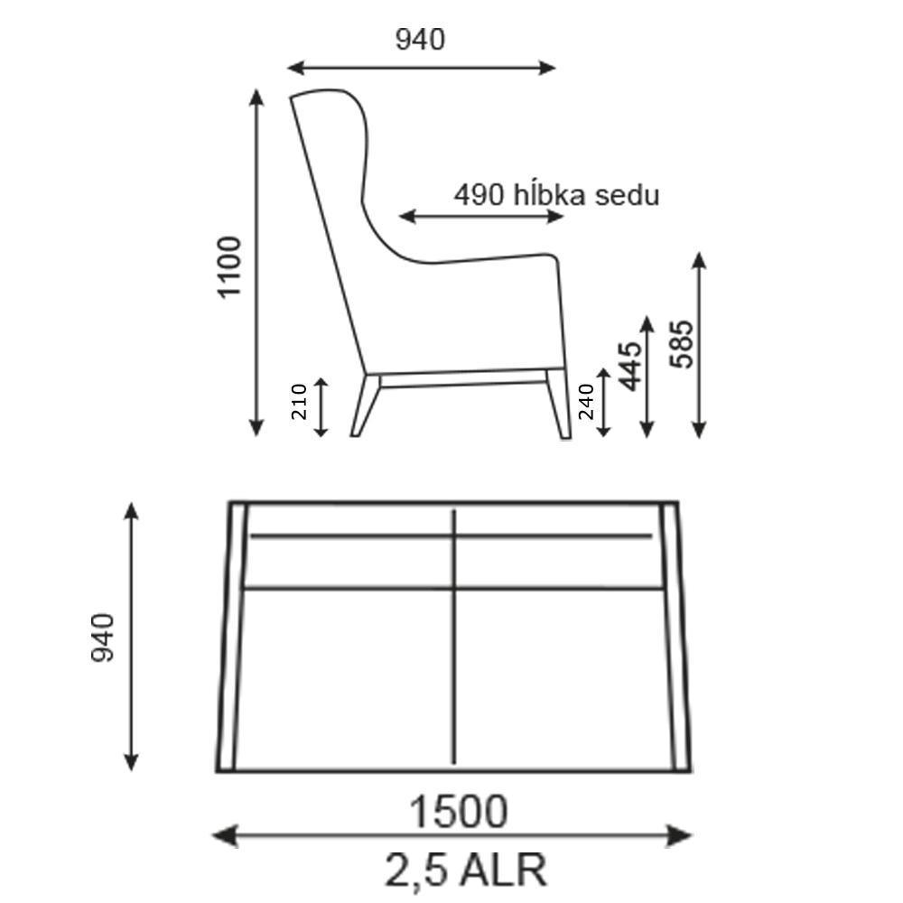 Rozměr: š150xh94xv110cm (výška je udávána i s podnoží)