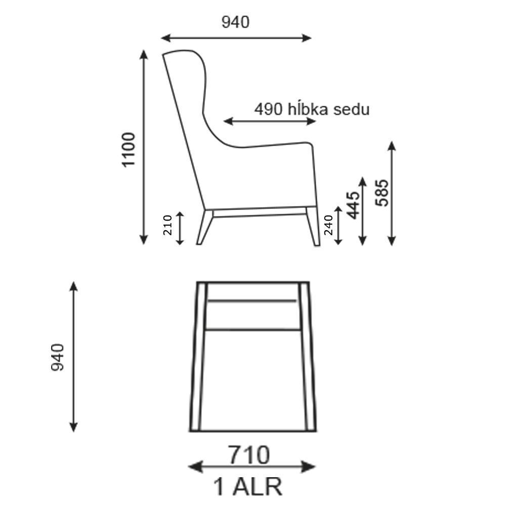 Křeslo s dřevěnou podnoží mořenou, nebo lakovanou (podnož není součástí balení)
