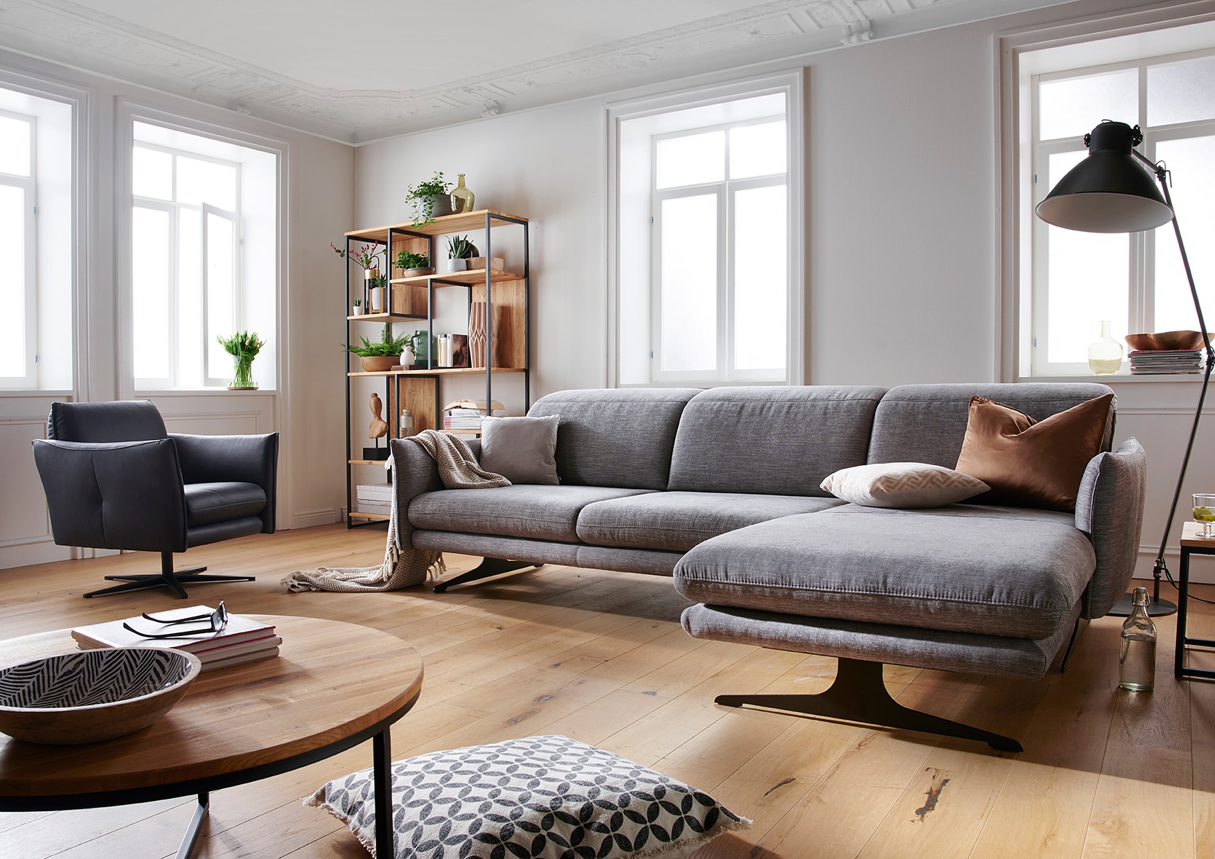 Designová sedací souprava, v různých variantách sestav a polohování.