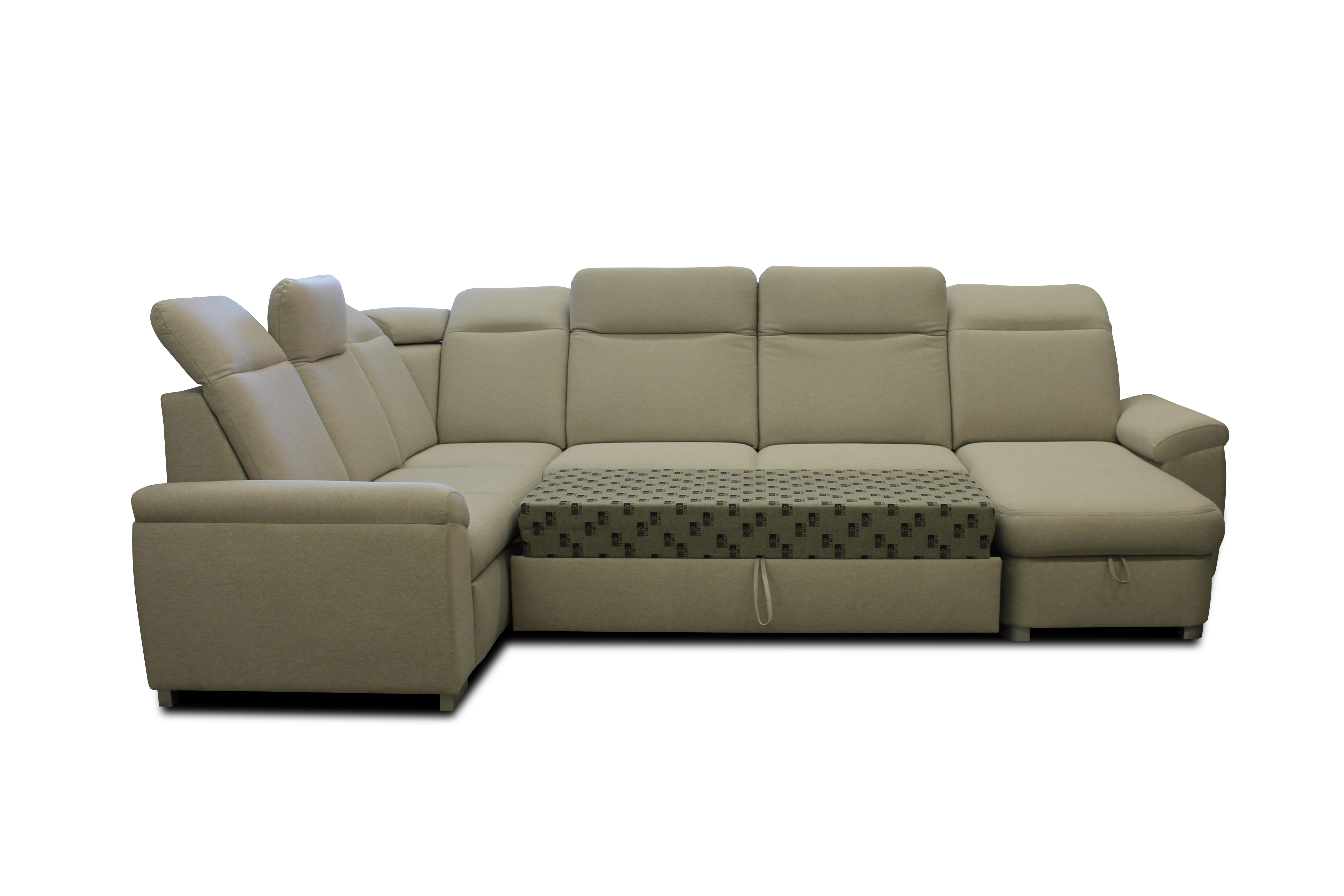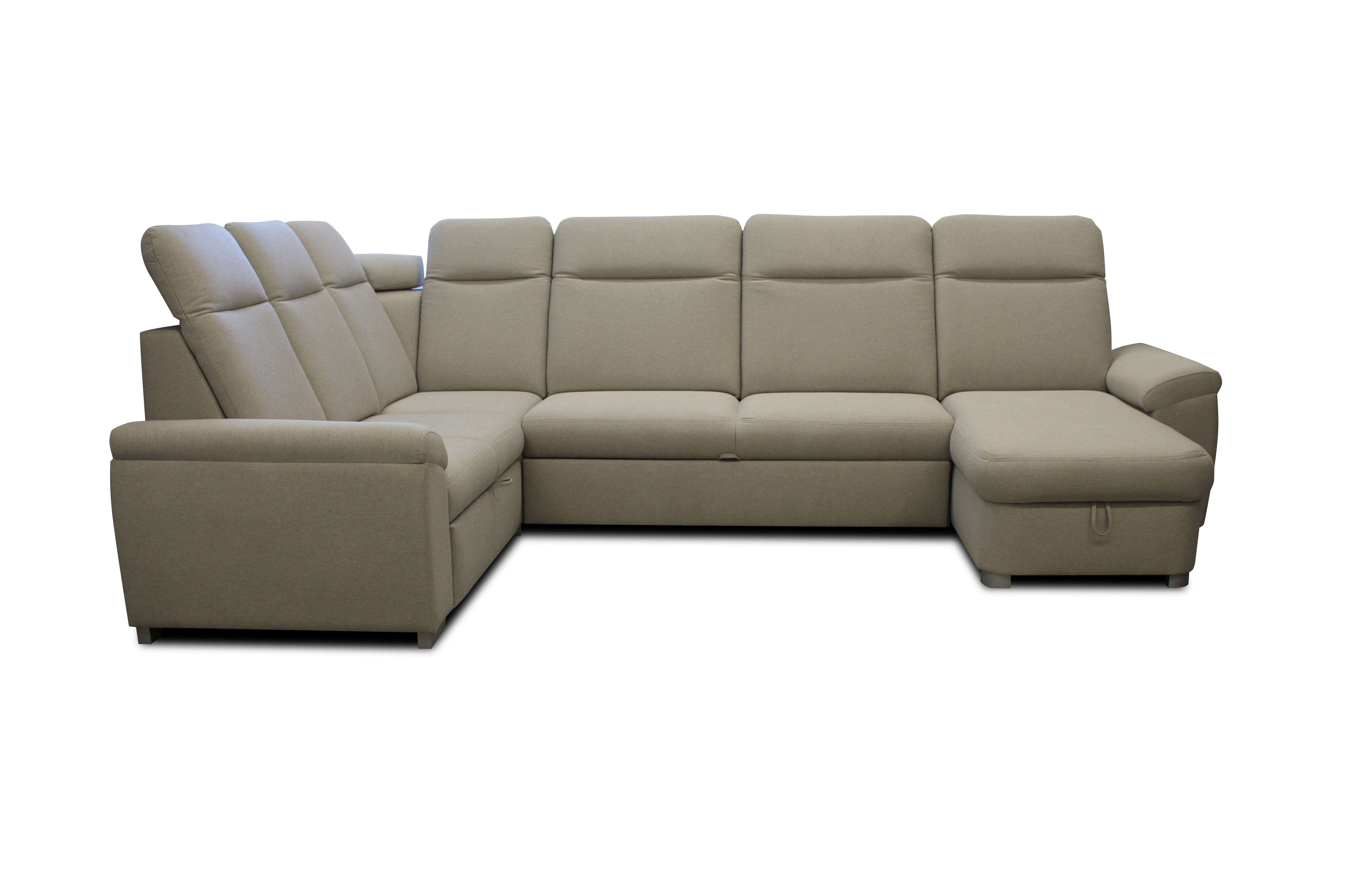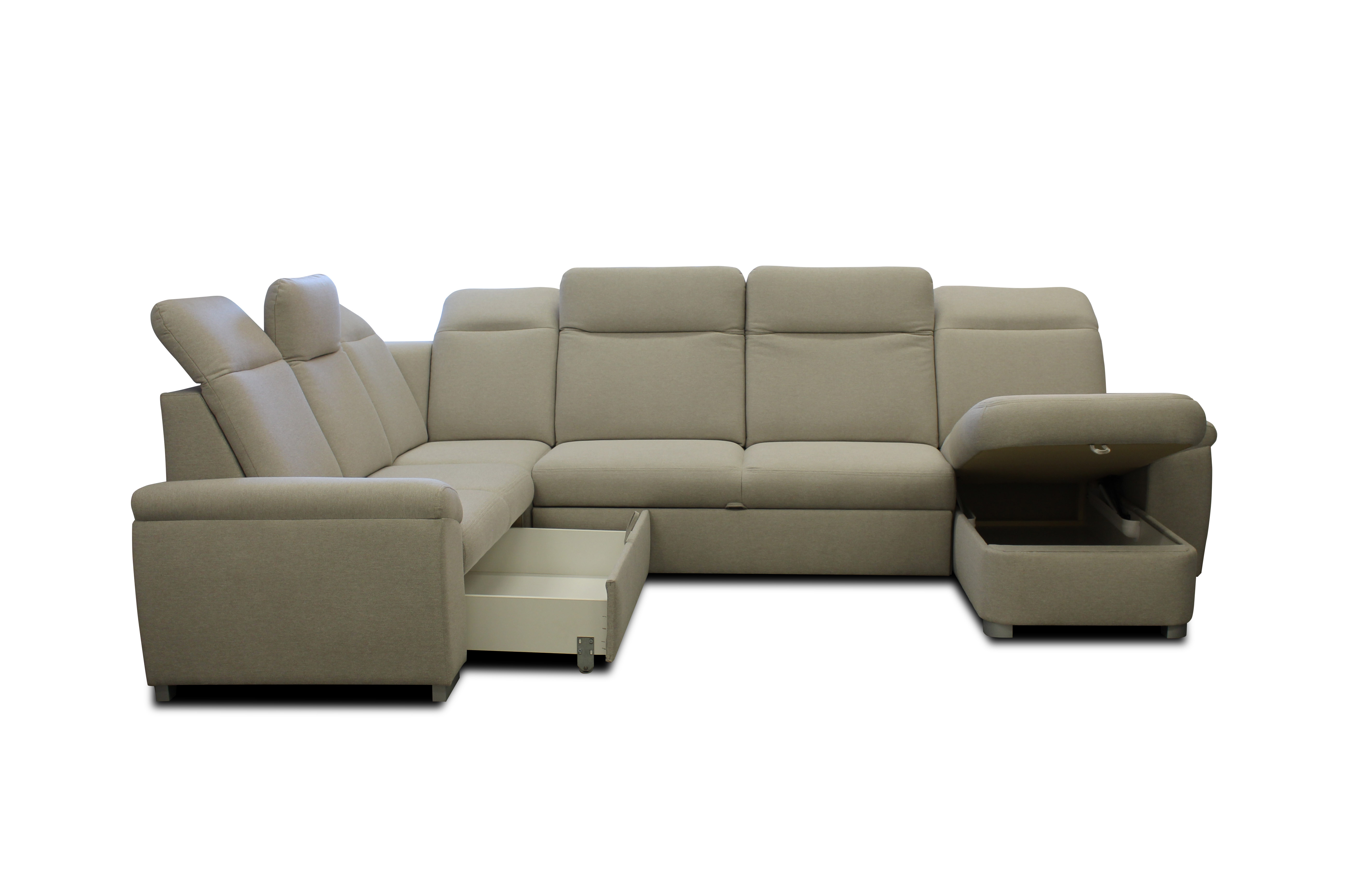Vkusná a jednoduchá sedací souprava je vybavena úložným prostorem s rozkladem na lůžko pro příležitostné spaní.