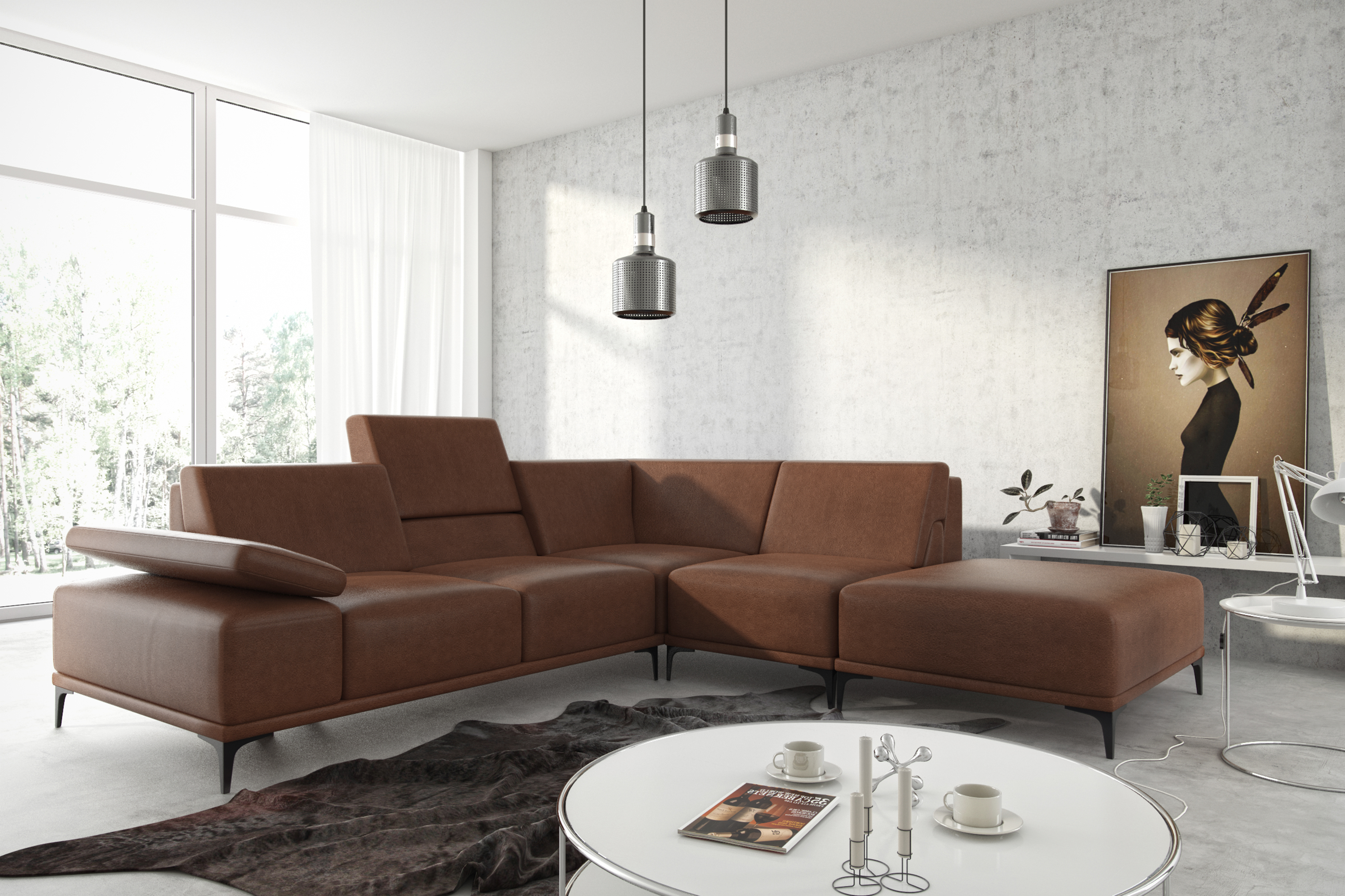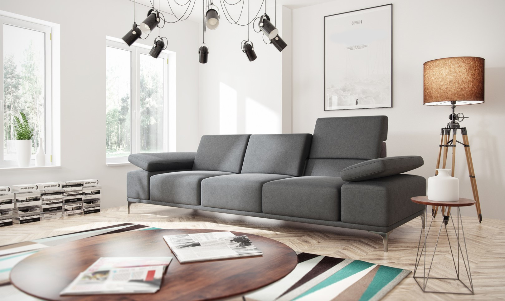 Velmi pohodlná a elegantní sedací souprava s vysokým komfortem sezení, které zajišťují pružinové sedáky a inovativní, opěrné polštáře, které jdou díky specifickým profilům zvednout do výšší pozice.