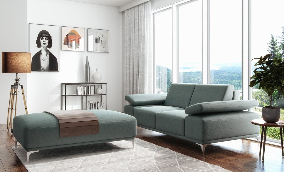Sedačka Menchester je také vybavena polohovacími područkami a taburetem, který jde jednoduchým systémem připevnit k sedačce.
