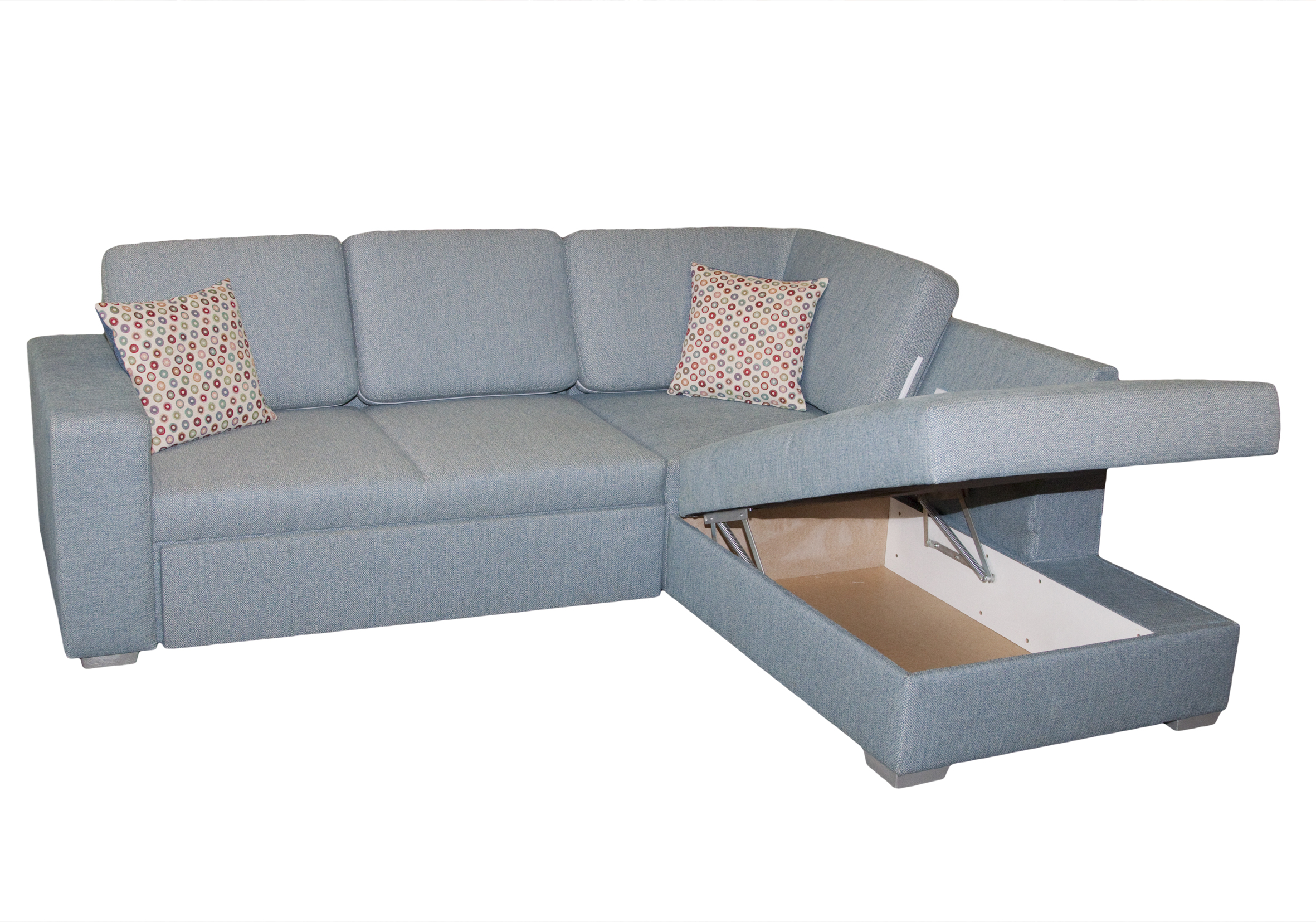 Luxusní systémová celočalouněná rohová sedací souprava, rozkládací s úložným prostorem.