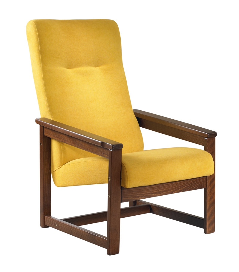Opěrák: buková překližka + gumotextilní popruhy + PUR pěna + rouno + potahová látka