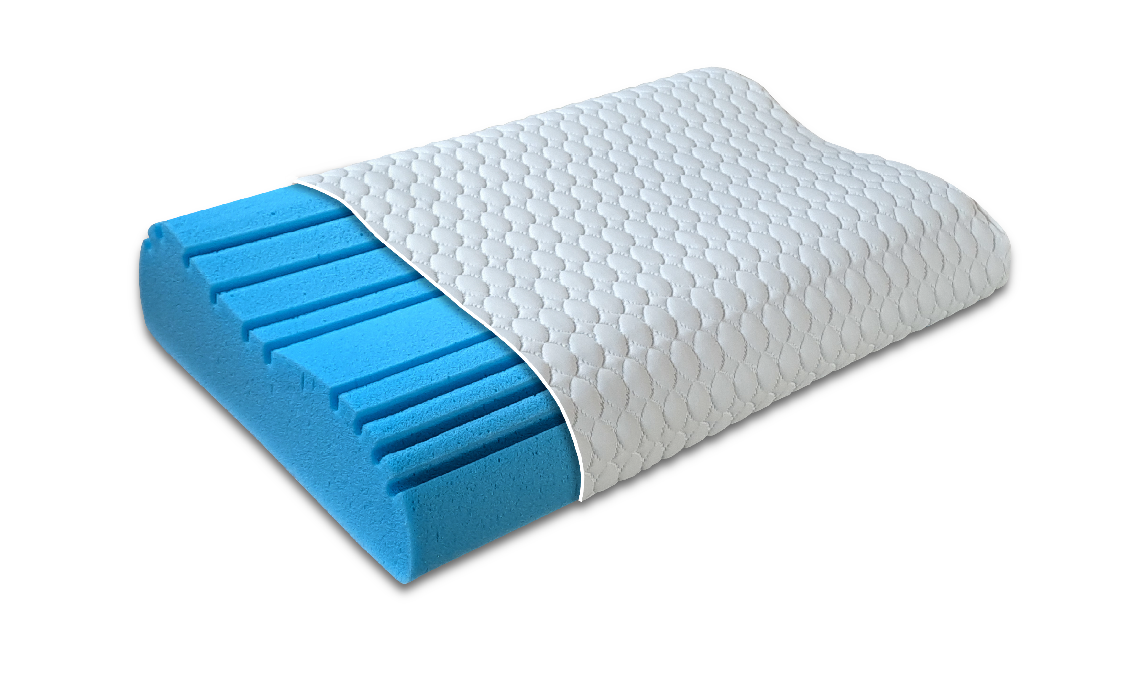 Jádro polštáře je vyrobeno z italské, paměťové pěny s chladivým gelem ICE-GEL od SITAB, s objemovou hmotností 55kg/m3.