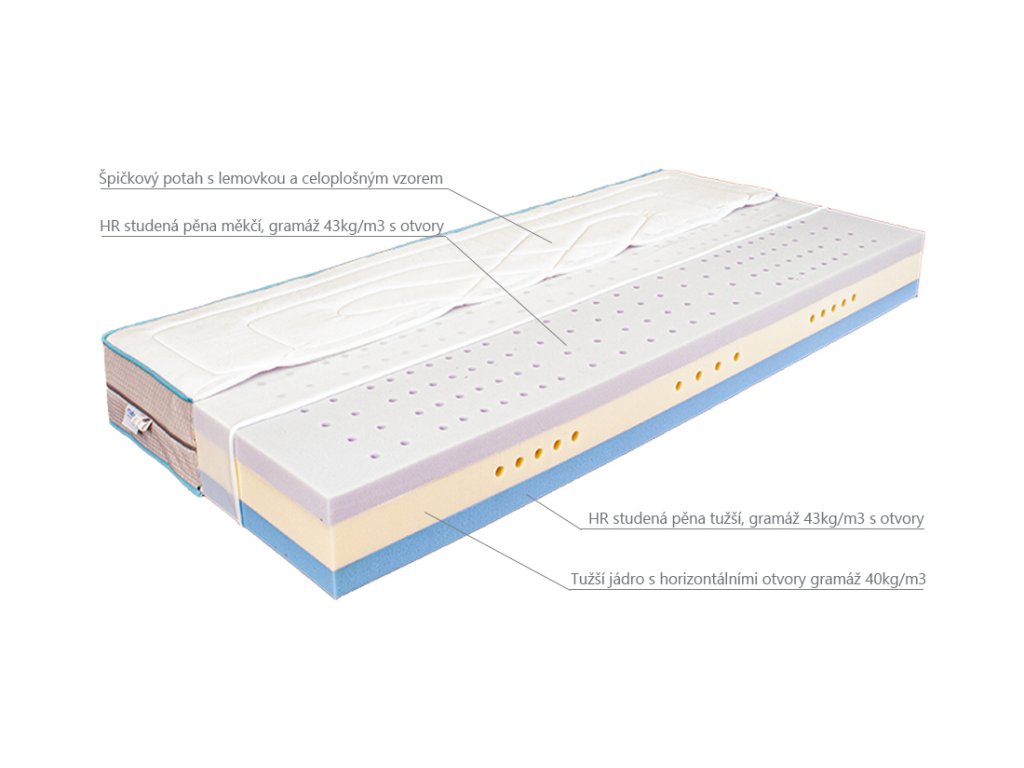 Jádro této matrace tvoří dvě vrstvy HR studené pěny gramáže 43 kg s vysokým podílem rostlinného extraktu ze sóji. Rostlinný extrakt příjemně působí na pokožku uživatele.