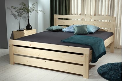 Postel je dodávána bez roštu,pod lakem je viditelná struktura dřeva.