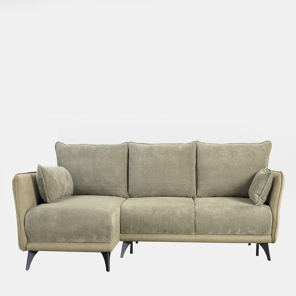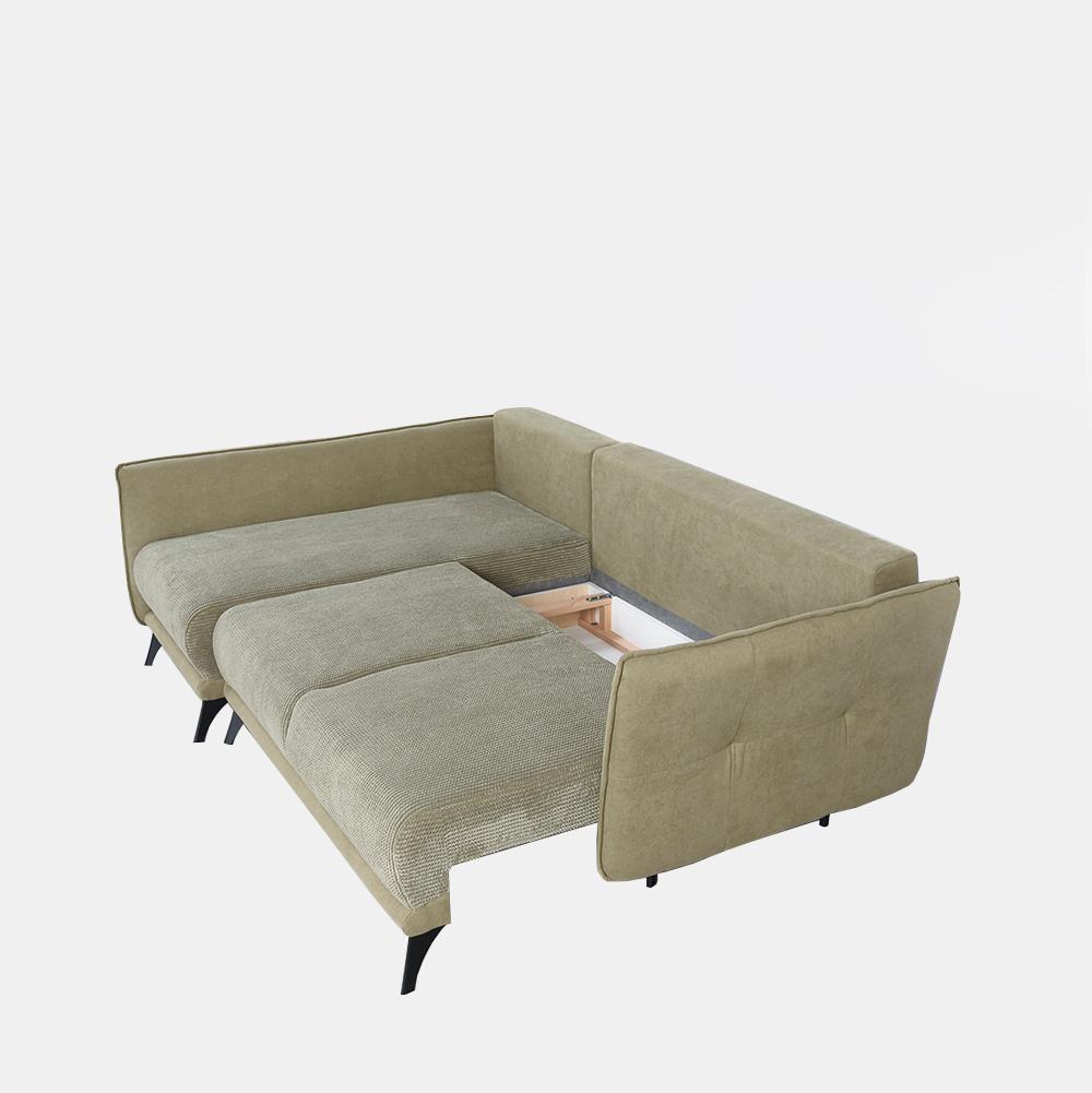 Rohová sedací souprava s rozkladem a úložným prostorem.